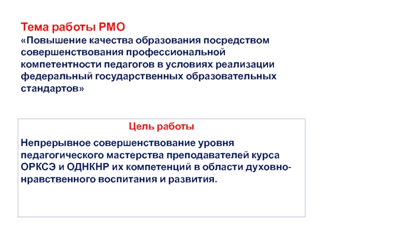 Непрерывное совершенствование уровня педагогического мастерства преподавателей курса ОРКСЭ и ОДНКНР их компетенций в области духовно-нравственного воспитания и развития.