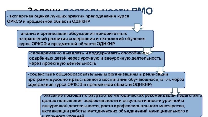 - анализ и организация обсуждения приоритетных направлений развития содержания и технологий обучения курса ОРКСЭ и предметной области ОДНКНР