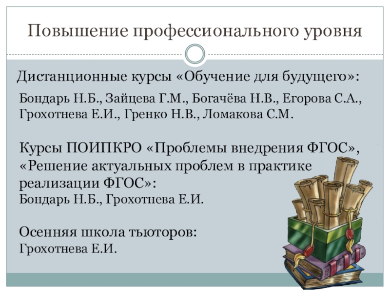 Курсы ПОИПКРО «Проблемы внедрения ФГОС», «Решение актуальных проблем в практике реализации ФГОС»: