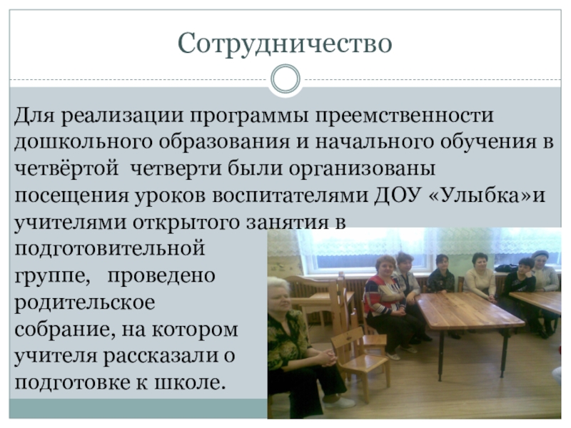 Для реализации программы преемственности дошкольного образования и начального обучения в четвёртой