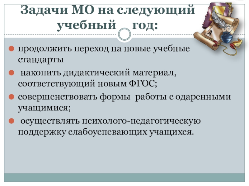 осуществлять психолого-педагогическую поддержку слабоуспевающих учащихся.