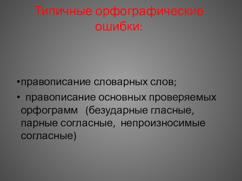 Слайд 9Типичные орфографические ошибки: