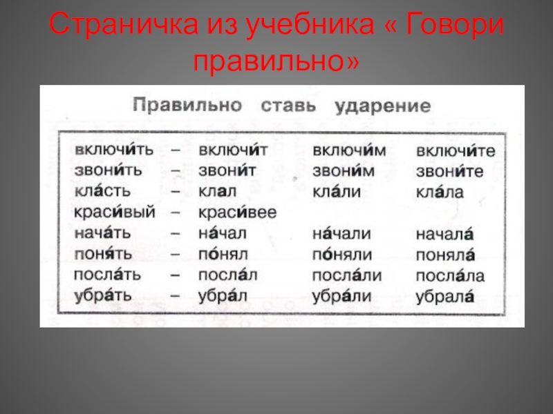 Страничка из учебника « Говори правильно»