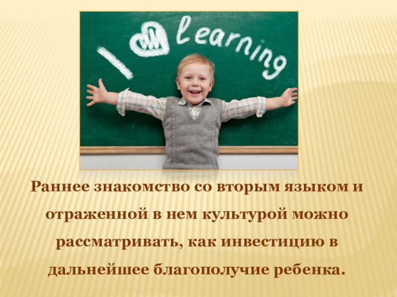 Раннее знакомство со вторым языком и отраженной в нем культурой можно рассматривать, как инвестицию в