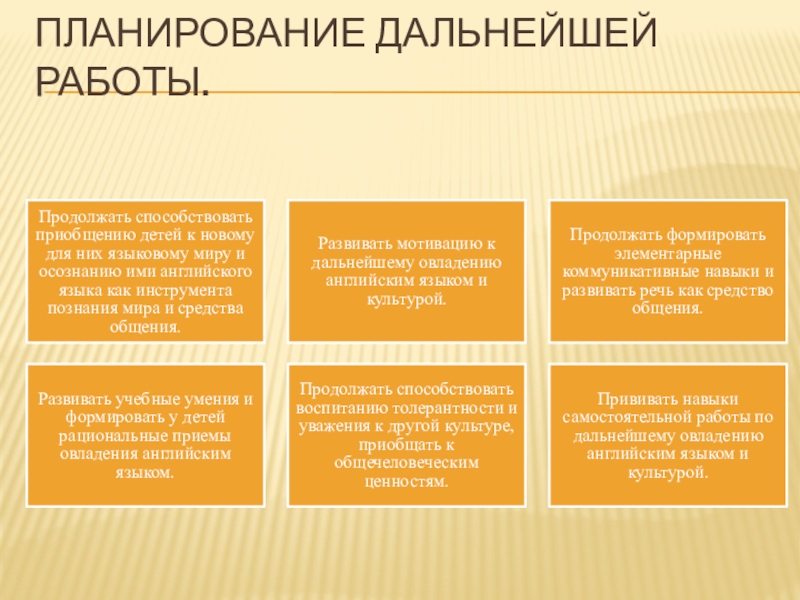 Слайд 20Планирование дальнейшей работы.