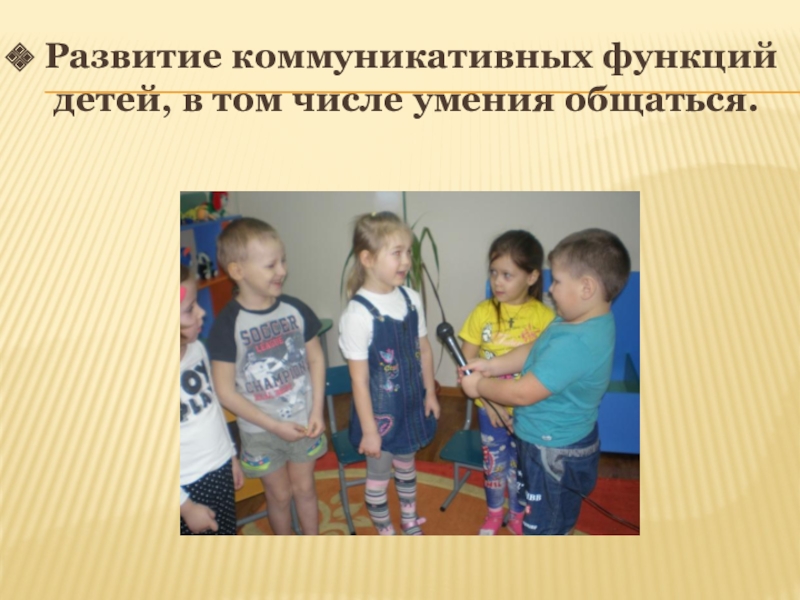 Слайд 8 Развитие коммуникативных функций детей, в том числе умения общаться.