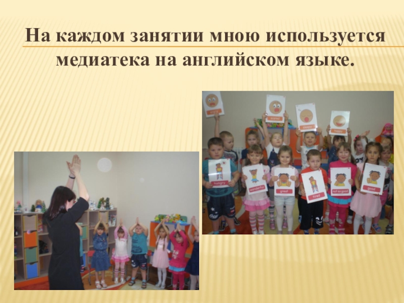 Слайд 19На каждом занятии мною используется медиатека на английском языке.