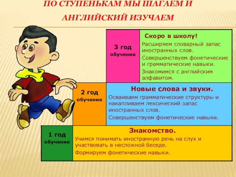 Слайд 4По ступенькам мы шагаем и английский изучаем
