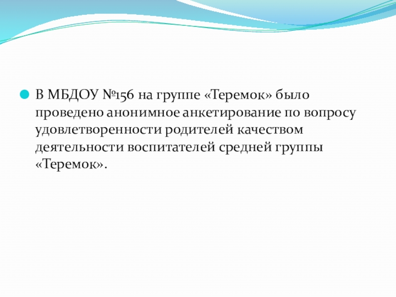 Слайд 4В МБДОУ №156 на группе «Теремок» было проведено анонимное анкетирование по