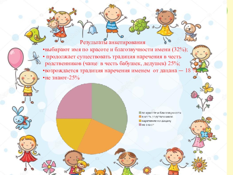 продолжает существовать традиция наречения в честь родственников (чаще в честь бабушек, дедушек) 25%;