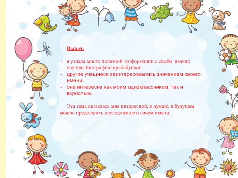 Эта тема оказалась мне интересной, я думаю, в будущем можно продолжить исследование о своем имени.
