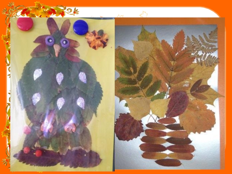 Презентация аппликаций из осенних листьев на сайт. В гостях у осени Детские презентации