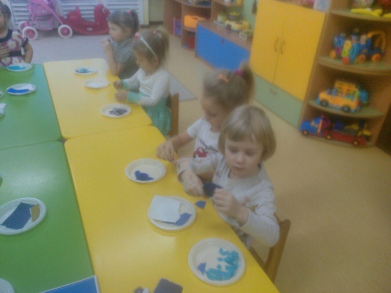 Воспитывать самостоятельность,аккуратность при работе с клеем,терпение,умение действовать рядом со сверстниками