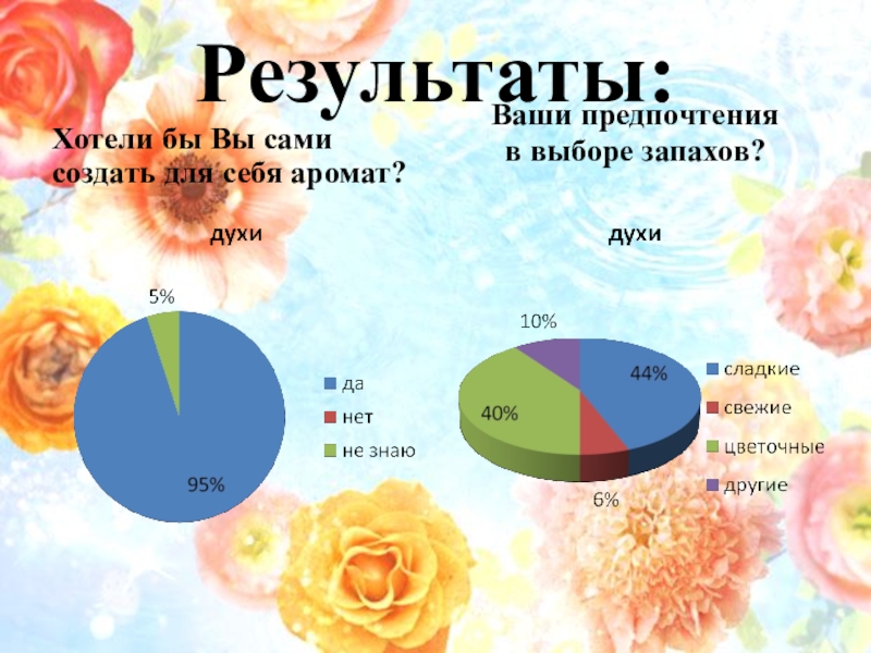 Результаты:Хотели бы Вы сами создать для себя аромат?Ваши предпочтения в выборе запахов?