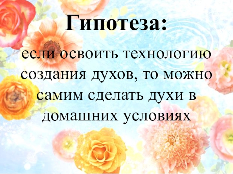 Гипотеза:если освоить технологию создания духов, то можно самим сделать духи в домашних условиях