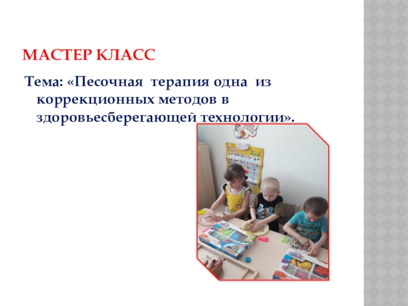 МАСТЕР КЛАССТема: «Песочная терапия одна из коррекционных методов в здоровьесберегающей технологии».