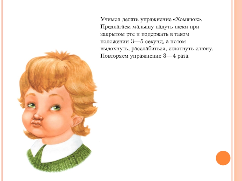 Предлагаем малышу надуть щеки при закрытом рте и