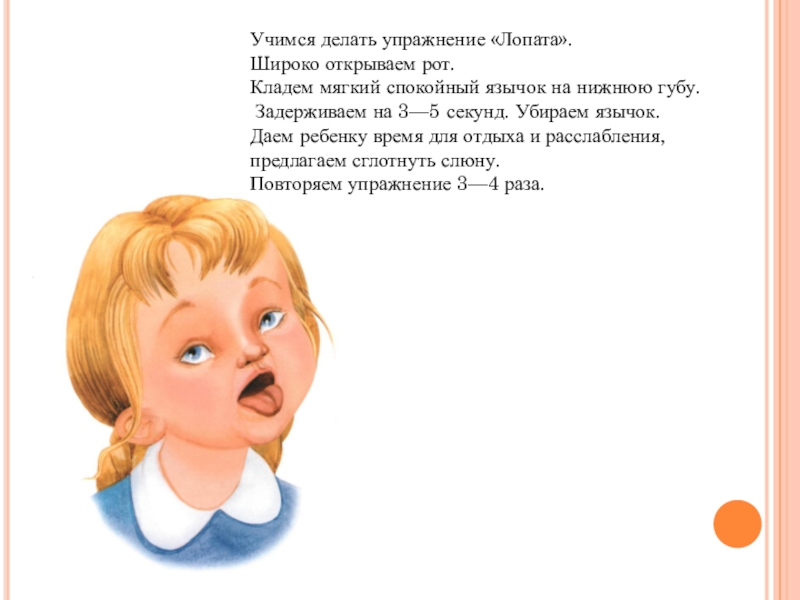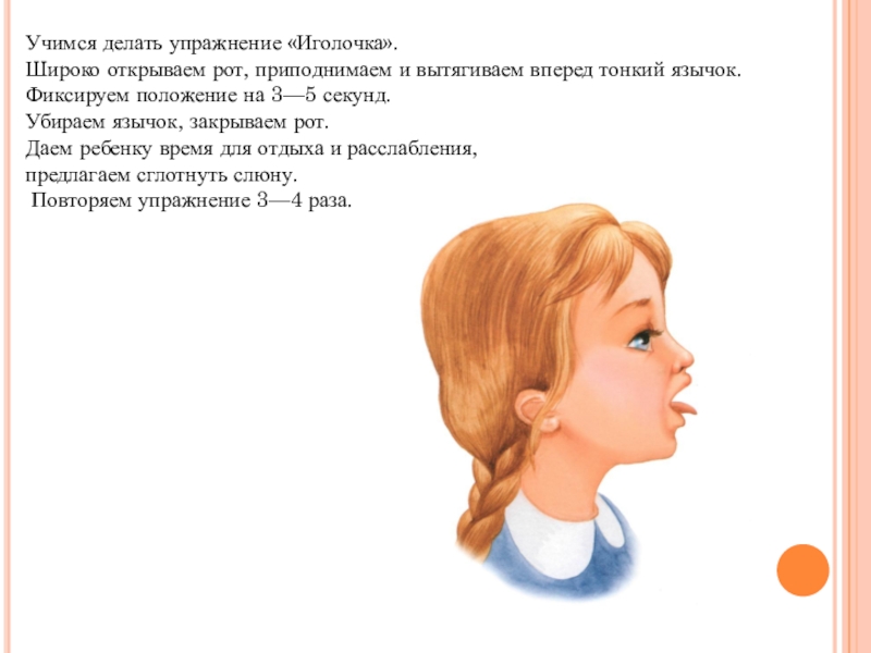 Затем предлагаем ребенку опустить язычок,