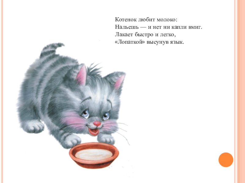 Слайд 13Котенок любит молоко: