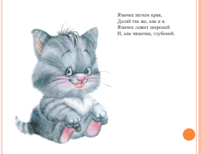 Слайд 14Учимся делать упражнение «Котенок лакает молоко».