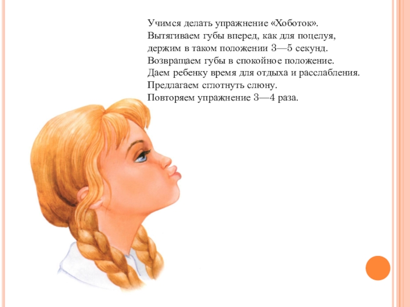 Слайд 8Учимся делать упражнение «Хоботок».
