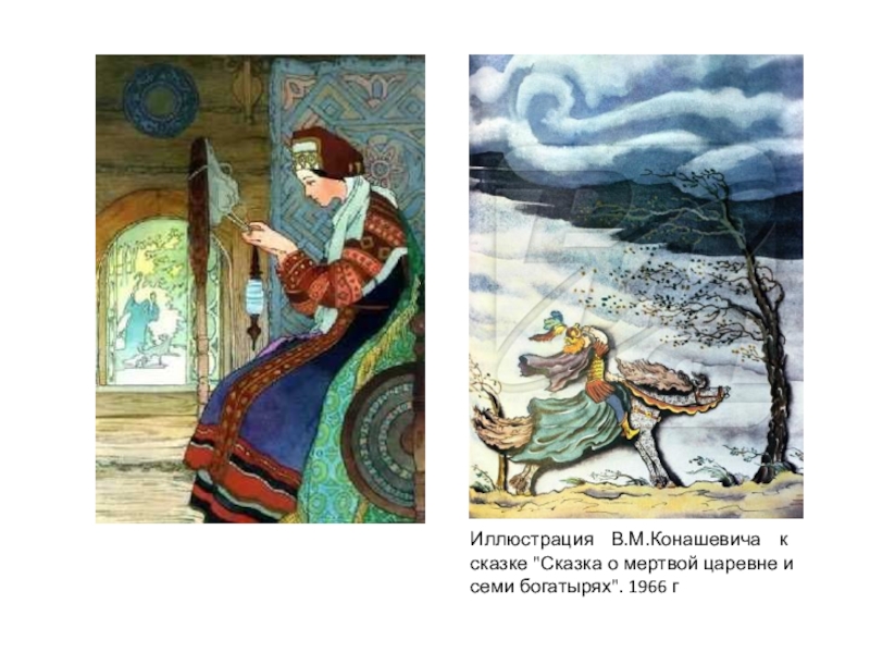 Слайд 21Иллюстрация В.М.Конашевича к сказке "Сказка о мертвой царевне и семи богатырях".