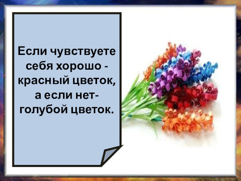 Если чувствуете себя хорошо -красный цветок, а если нет- голубой цветок.