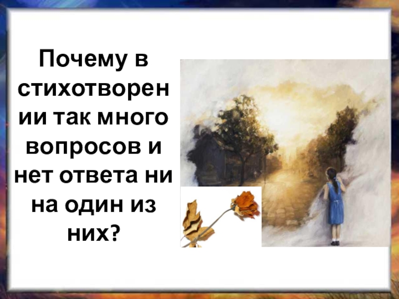 Слайд 16Почему в стихотворении так много вопросов и нет ответа ни на