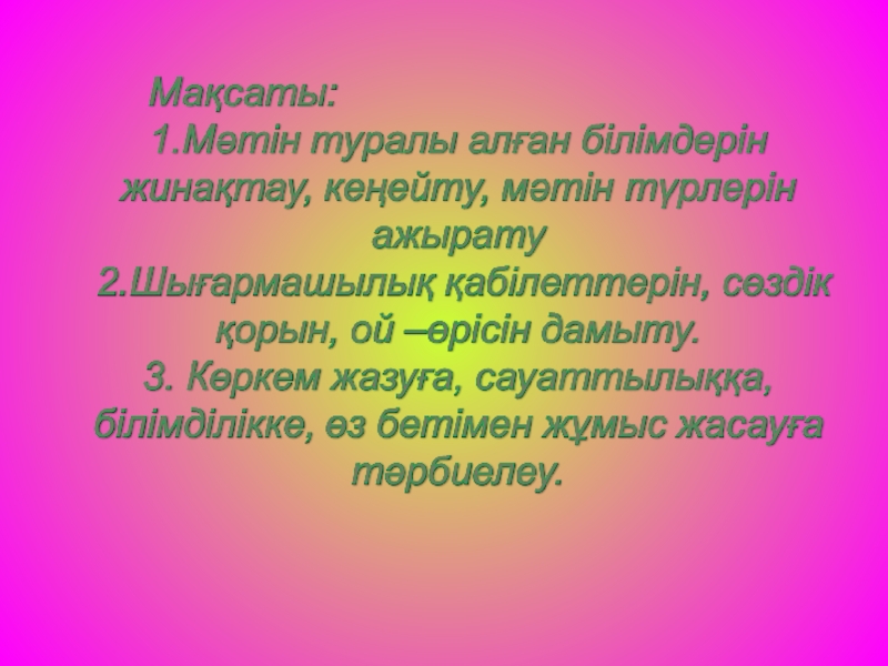 Презентация, доклад Ашық сабақ Мәтін түрлері