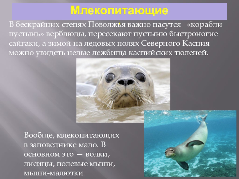 Вообще, млекопитающих в заповеднике мало. В основном это — волки, лисицы, полевые мыши, мыши-малютки.