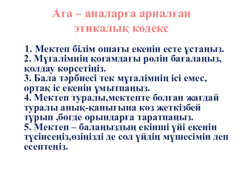 Біз сіздерді мектептегі оқушы өміріне қатысты өтетін іс – шараларға және мектептегі жиналыстарға белсенді түрде қатысуларыңызды сұраймыз!