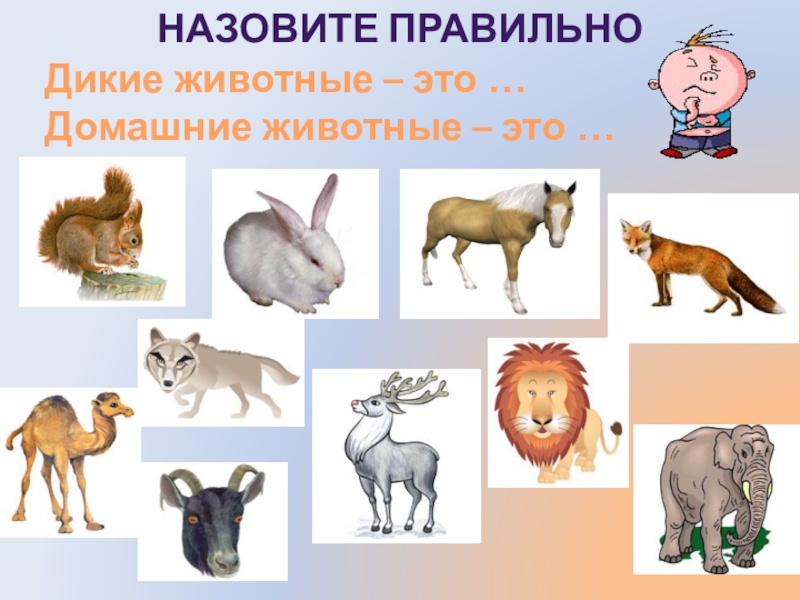 НАЗОВИте ПРАВИЛЬНОДикие животные – это … Домашние животные – это …