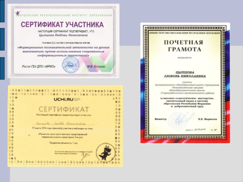 Профессиональное образование: учитель начальных классов, Ичалковское педагогическое училище им. «С.М.Кирова», диплом