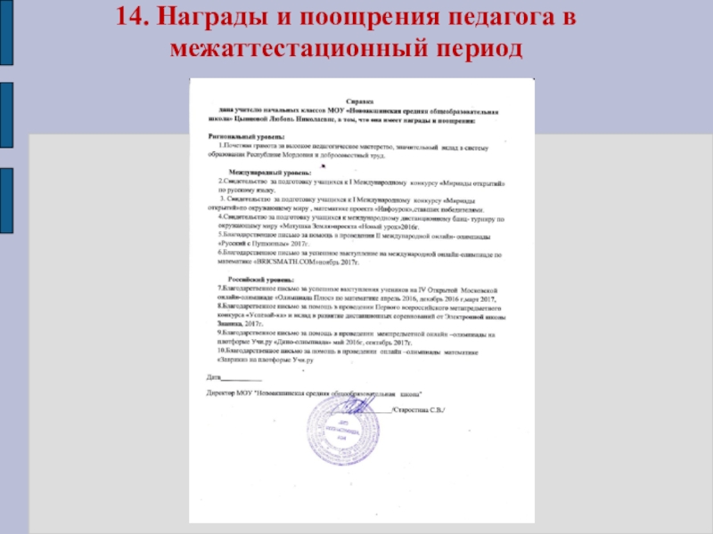 Общий стаж педагогической работы : 13 лет