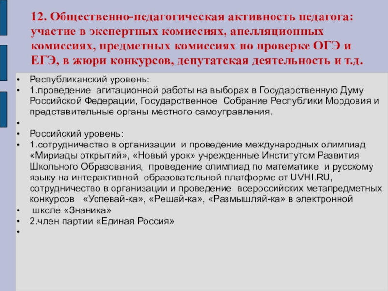 Наличие квалификационной категории: 12 разряд