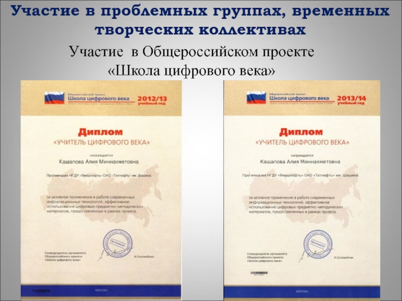 сертификат, 2013 год