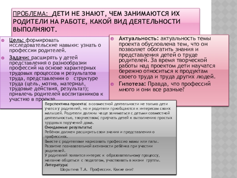Цель: формировать исследовательские навыки: узнать о профессии родителей.