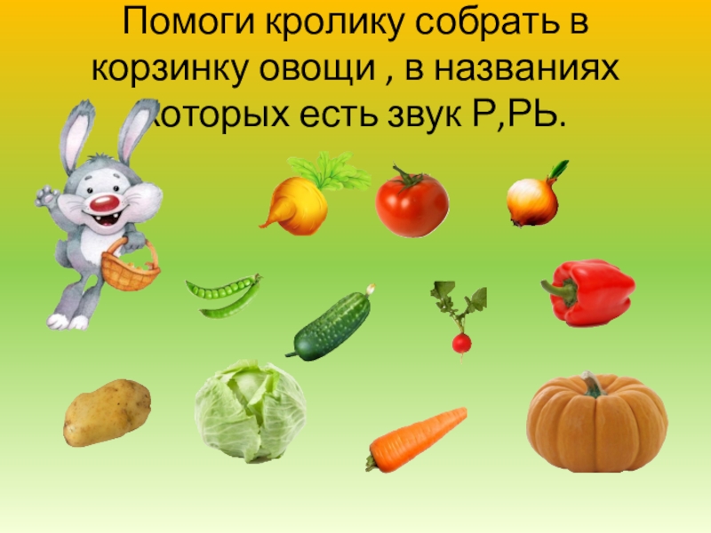 Помоги кролику собрать в корзинку овощи , в названиях которых есть звук Р,РЬ.