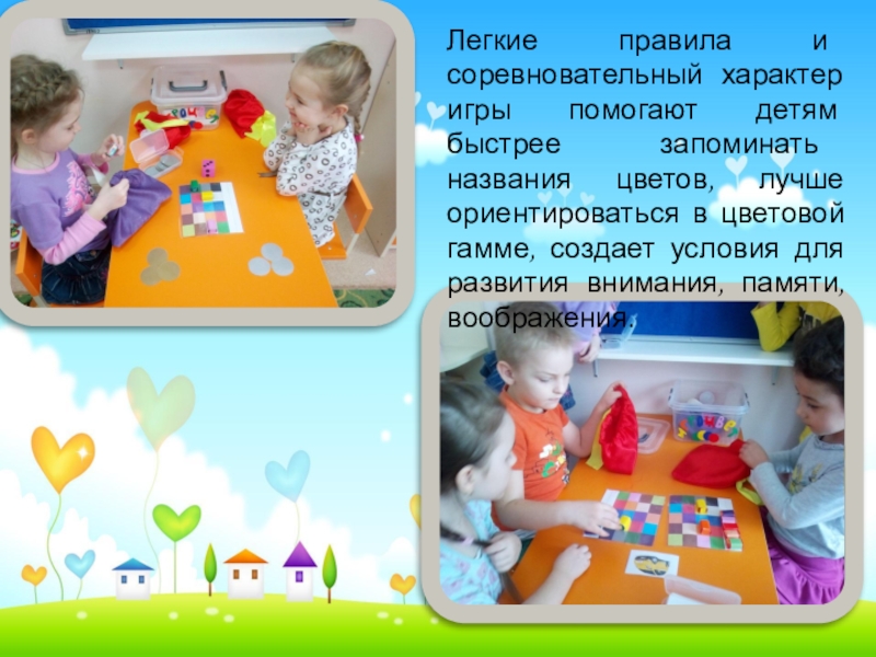 Слайд 8Легкие правила и соревновательный характер игры помогают детям быстрее запоминать названия
