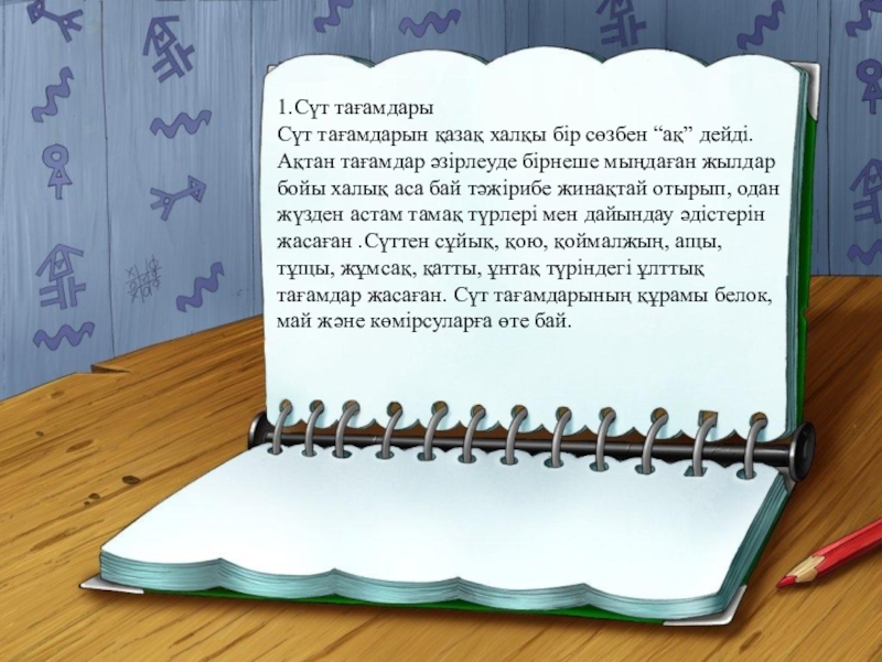 Слайд 41.Сүт тағамдары  Сүт тағамдарын қазақ халқы бір сөзбен “ақ” дейді.Ақтан тағамдар әзірлеуде