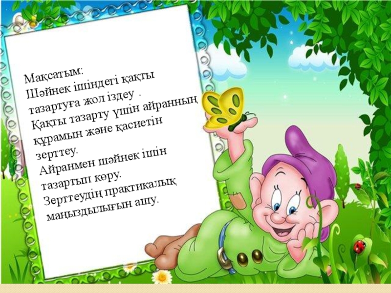 Слайд 2Мақсатым:  Шәйнек ішіндегі қақты тазартуға жол іздеу .  Қақты тазарту үшін айранның құрамын