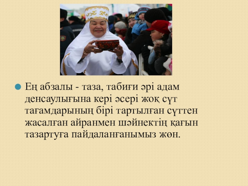 Слайд 1Тақырыбы: Айран – қасиетті тазартқыш