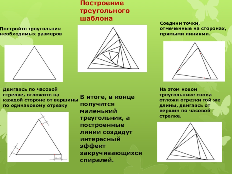 На этом новом треугольнике снова отложи отрезки той же длины, двигаясь от вершин по часовой стрелке.