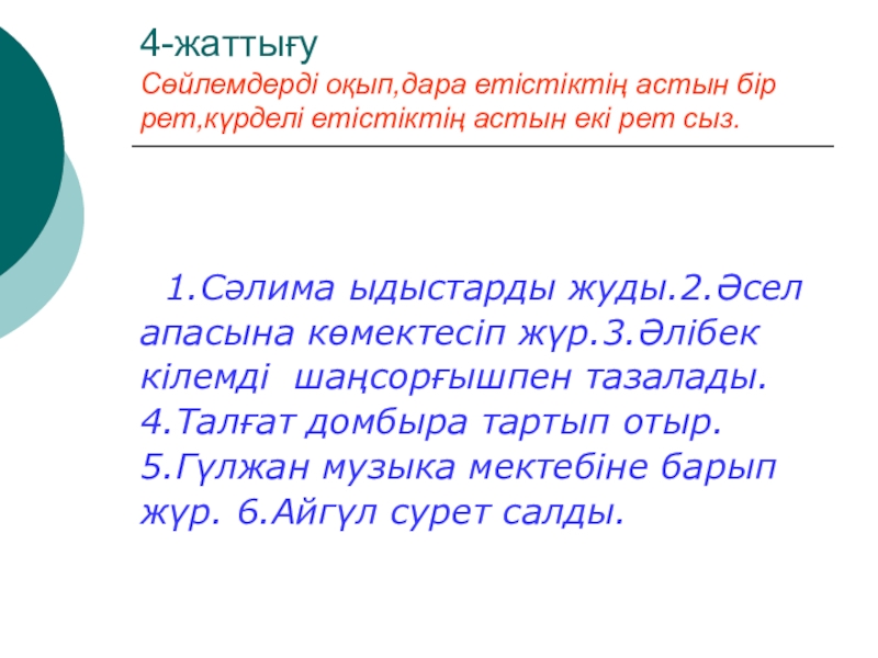 1.Сәлима ыдыстарды жуды.2.Әсел
