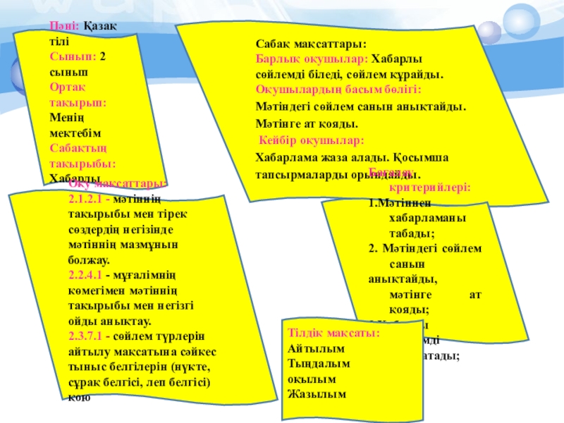 2.1.2.1 - мәтіннің тақырыбы мен тірек сөздердің негізінде мәтіннің мазмұнын болжау.