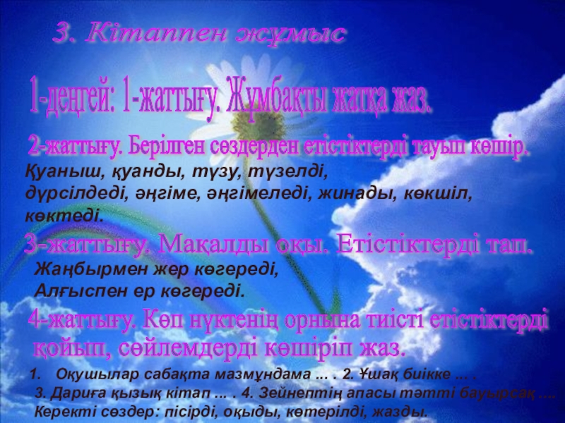 Оқушылар сабақта мазмұндама ... . 2. Ұшақ биікке ... .