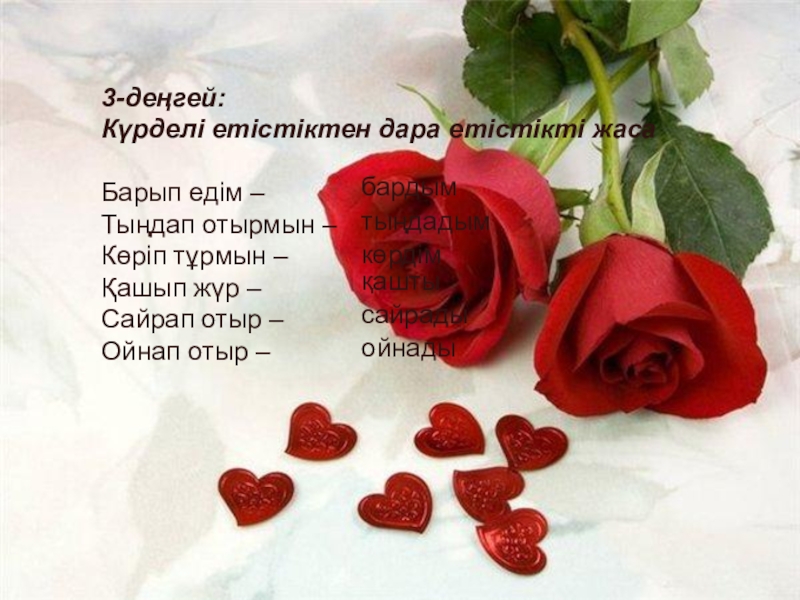 Керекті сөздер: пісірді, оқыды, көтерілді, жазды.