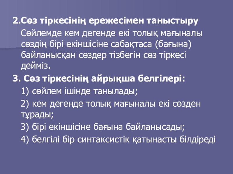 Слайд 72.Сөз тіркесінің ережесімен таныстыру