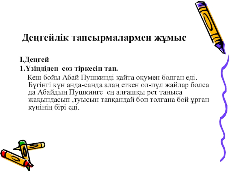 Слайд 11Деңгейлік тапсырмалармен жұмыс
