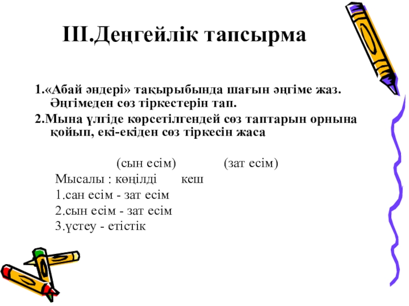 Слайд 14ІІІ.Деңгейлік тапсырма